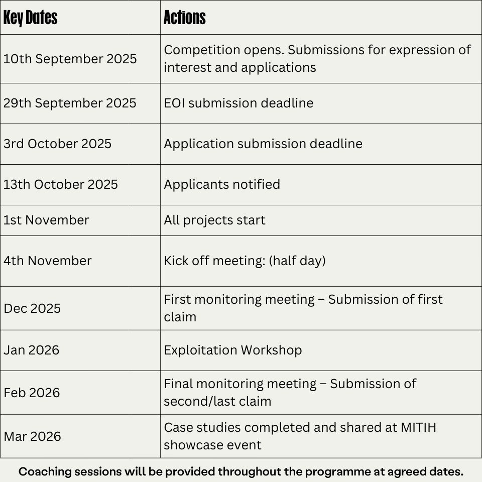 If you want help to find a project partner, contact the MITIH Team at mitih2526@salford.gov.uk.