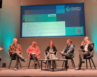 Mikesian Studio said: “We’re really excited to be working with MediaCity again this year to transform the Box on the Docks space for summer 2022. We wanted to create something that brightened up the space with bold colours and graphic forms, with a mural that focused on the return of people and communities – and celebrated that feeling of togetherness that we’ve all been missing.”